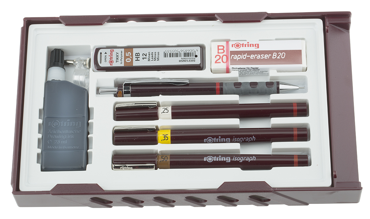 Rotring Black Isograph Pen Set, 0.25 → 0.5 mm Tip Size