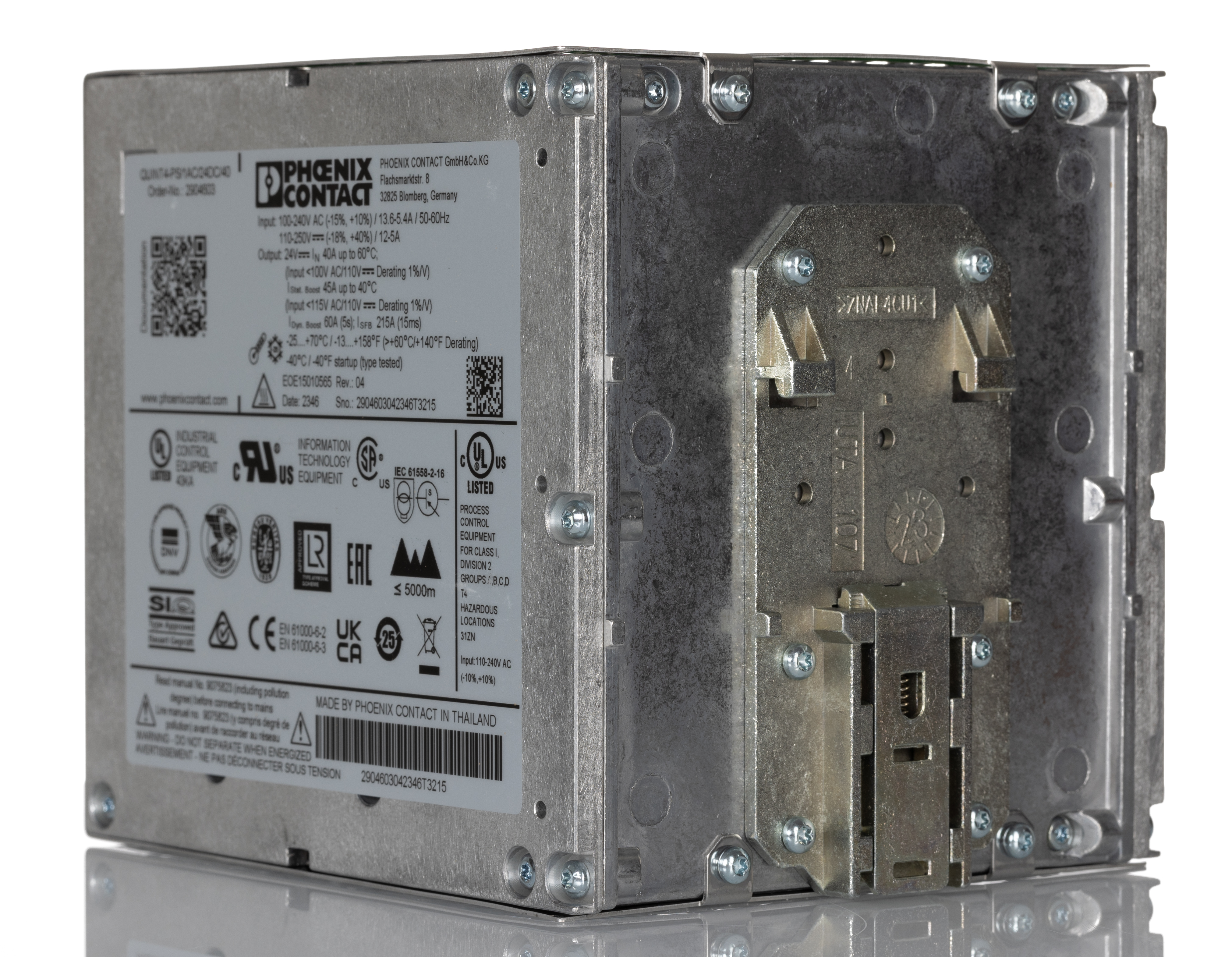 Phoenix Contact DIN Rail Power Supply, 40A Output Current, 24V Output Voltage - QUINT4-PS/1AC/24DC/40 - 2904603