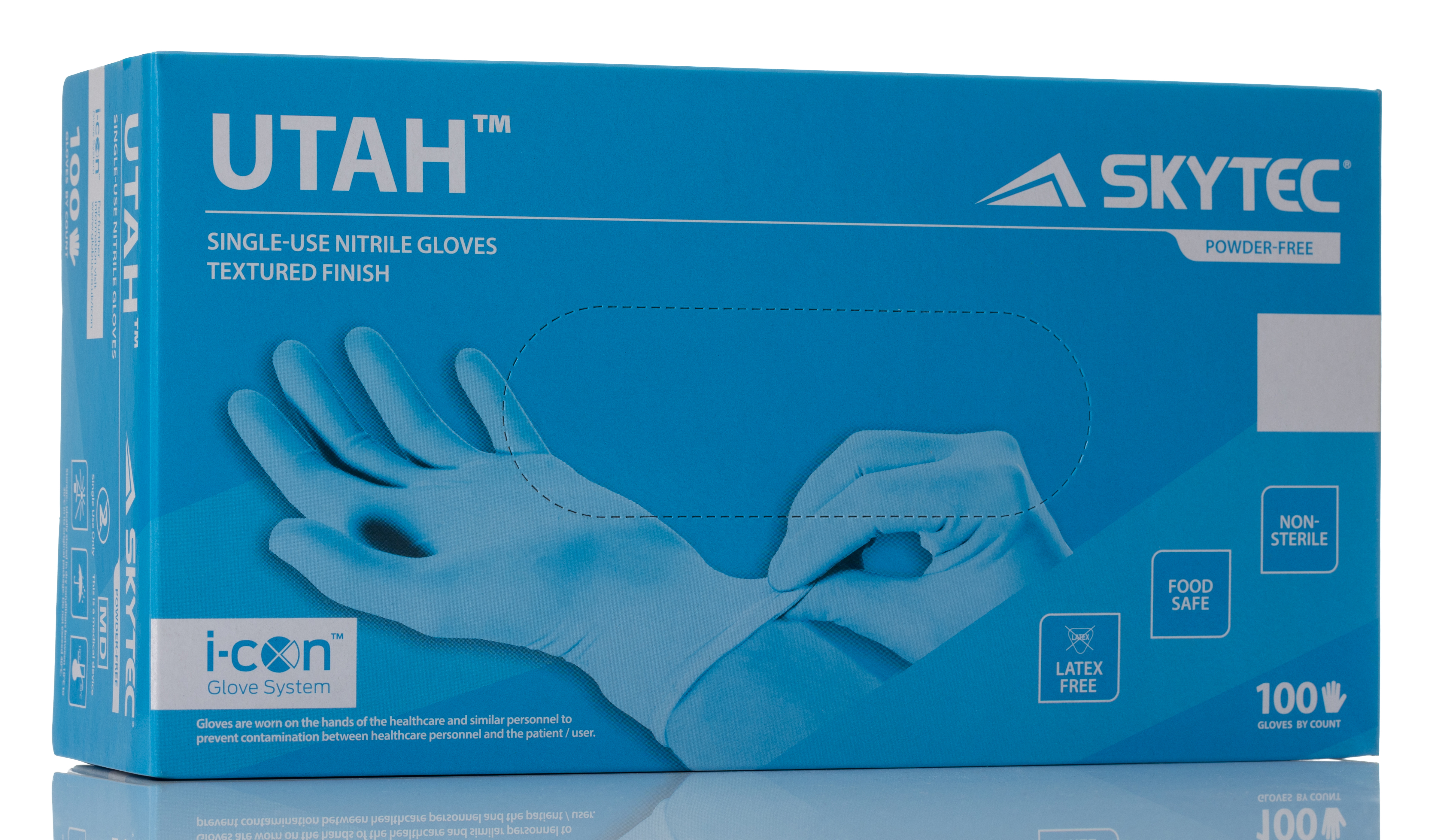 Skytec UTAH Blue Powder-Free Nitrile Disposable Gloves, Size S, 100 per Pack