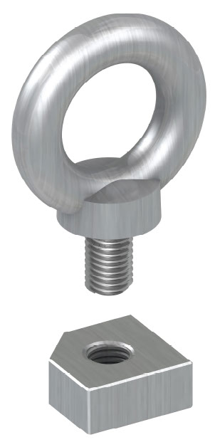 The eye bolts are made from cast steel with a galvanised finish that enhances their resistance to environmental influences and wear.