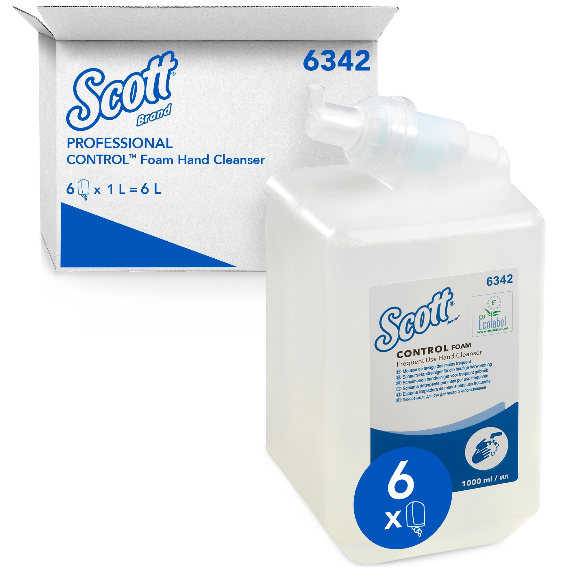 One case of KLEENEX® Foam Hand Soap consists of 6 cartridges, each cartridge containing 1L